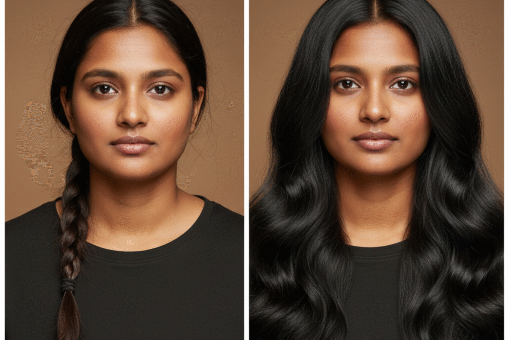• Perfect shade & texture match – Our stylists help you select the right texture (straight, wavy, curly) and colour so wefts blend invisibly with your own hair.